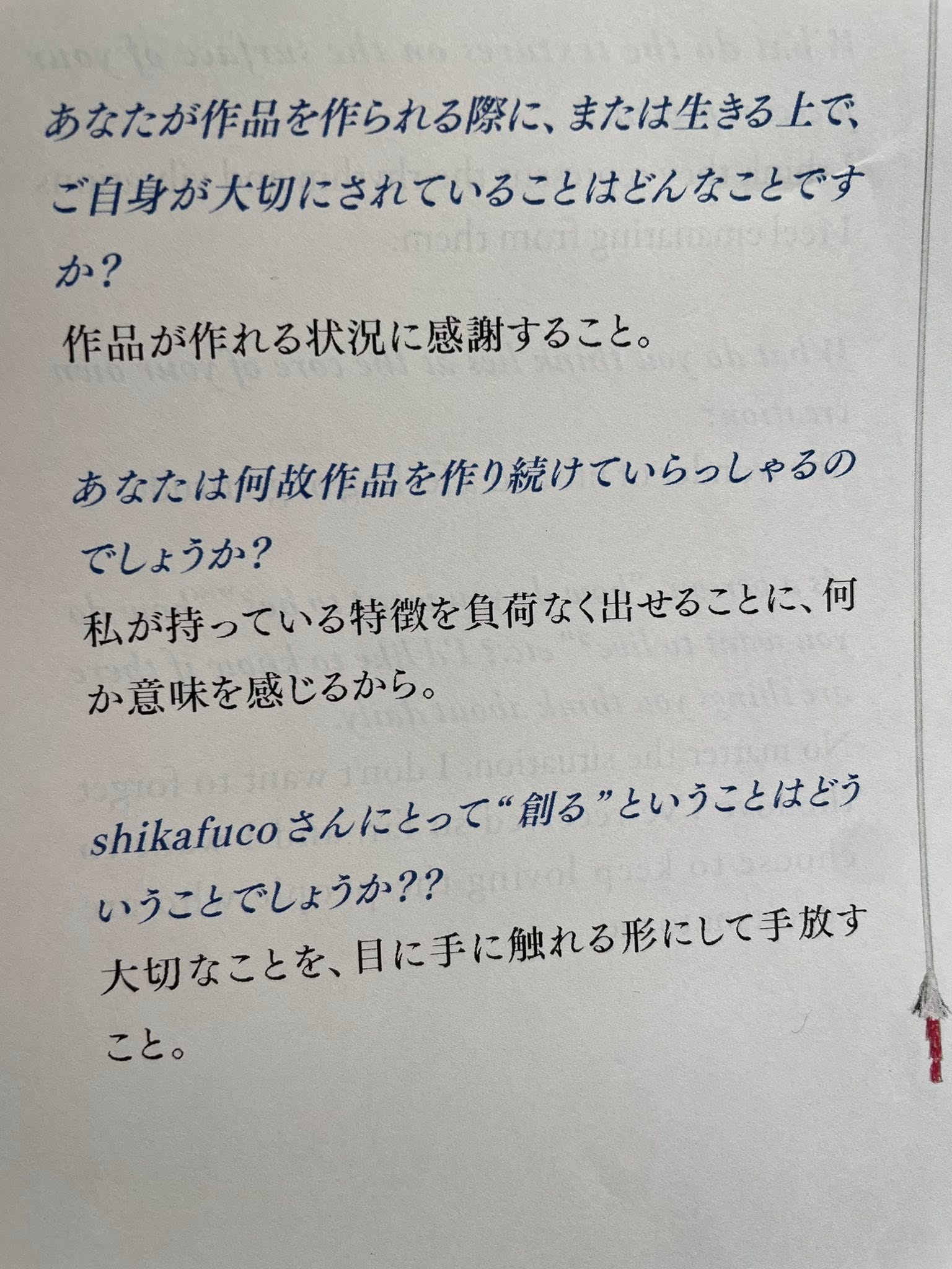 そんなshikafucoさんが今回の「ART Is.」での個展の会期(〜12/21)にあたり、オーナーのアヤちゃんに問われた「11の質問」への回答。